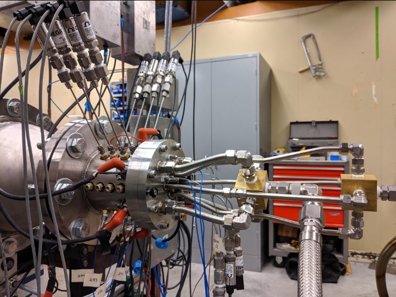 | An experimental Rotating Detonation Engine at the University of Washington. | |