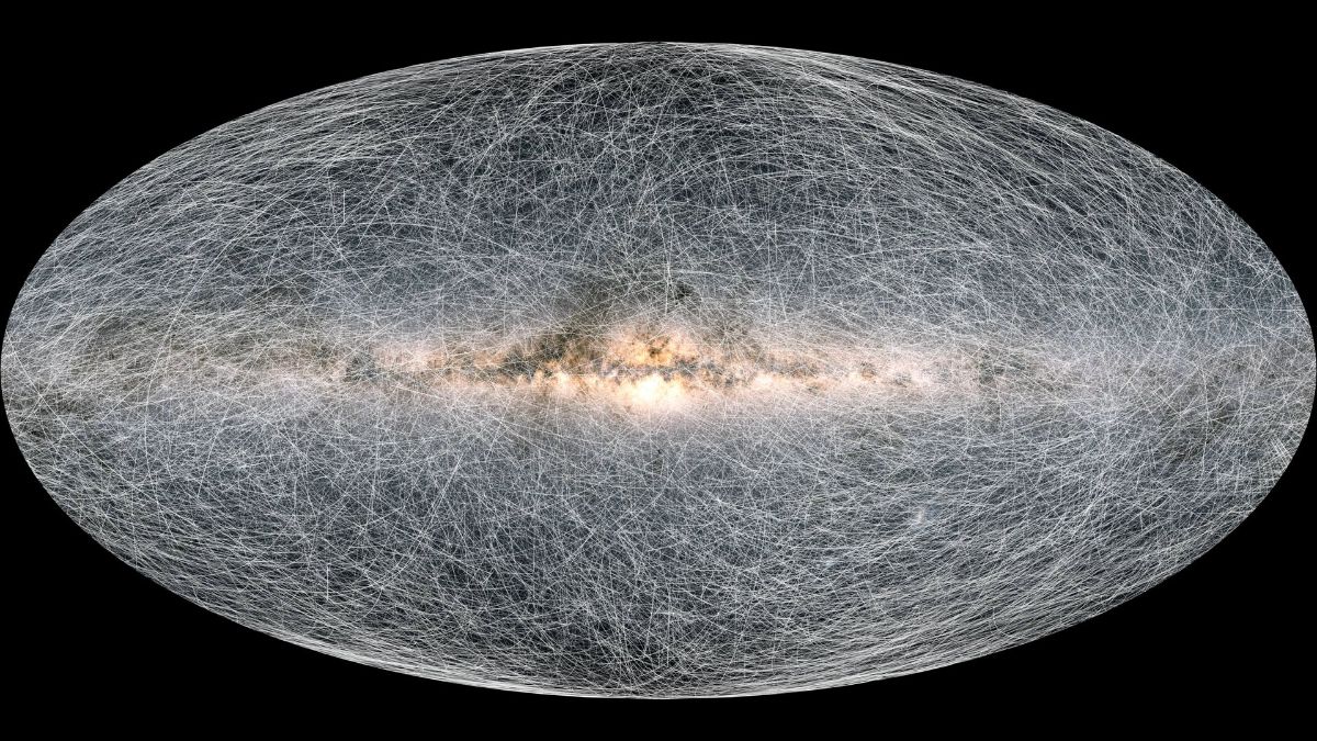 Gaia’s latest release contains data on 1.8 billion sources, with 1.4 billion of them also having stellar motion information. Here is an image of the entire sky created from an earlier version of this release, and below is an image showing the stellar motion of 40,000 stars within 100 parsecs of the Solar System over the next 80,000 years. (ed. yes, we are happy that we’re able to end the newsletter with full-sky survey images two weeks in a row!) | |