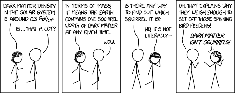 ¶In June, ESA selected three ‘deep fields’ for their upcoming Euclid mission. These deep fields, or regions of the sky unusually free of Milky Way stars, will be a partial focus of Euclid’s 2022 mission to map the structure, gravitational distortion, and distance-redshift relationships of galaxies in order to study dark energy and dark matter. Dark energy (also known as Einstein’s Cosmological Constant and self-proclaimed “greatest blunder”) is the non-zero energy density of space itself that we think is causing the accelerating expansion of the Universe. (Since the expansion started accelerating ~10 billion years ago, Euclid will focus on galaxies whose redshift is within that window.) The nature of dark energy is intimately tied to the eventual fate of the Universe—whether it will collapse, expand at a moderate pace, or expand so fast that it rips literally everything apart—which is something that keeps us all up at night. Dark matter, Euclid’s other focus through a survey of gravitational lensing, has nothing to do with the ill-named dark energy. Dark matter is matter that seems to interact only through gravity and must exist to explain gravitational lensing, the rotation of galaxies, and many other observations (cf. an entirely scientific and accurate survey of possible dark matter explanations). It’s estimated that about 71% of the mass-energy of the universe is dark energy, 24% is dark matter, and only about 5% is the “normal” matter that we observe. Related: Cosmology by Nobel laureate Brian Schmidt and From the Big Bang to Dark Energy are both excellent free online courses about these subjects. (Special thanks to our intern Emma Drake for helping write this and other entries this summer—she’s off to Berkeley to study astrophysics!) |
