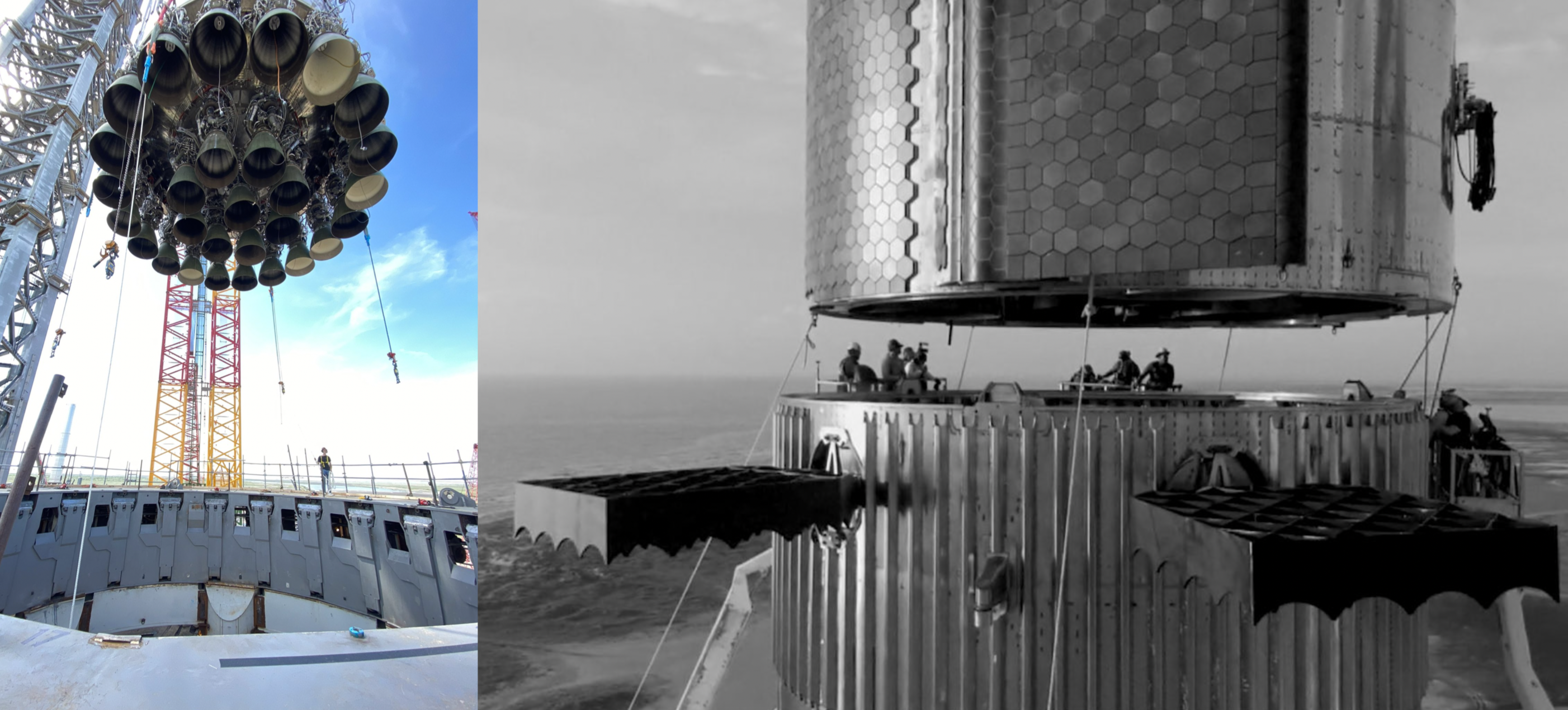 ¶Super Heavy was stacked, then unstacked. Briefly, SpaceX assembled the tallest (120 m), highest-thrust (about double the Saturn V), and only fully reusable orbital rocket in history. Then, having completed a fit test and photo-op, they unstacked it and wheeled it back to the high bay for finishing touches (installation of additional heat shield tiles, engine testing and heat shielding for the Raptors, and completion of the orbital launch tower and tank farm). Super Heavy Booster 4 alone is already an incredible 69 m tall and 9 m in diameter. Then they put a 50 m tall Starship (Ship 20) on top of it (which requires using the second tallest crane on Earth, according to Everyday Astronaut’s second interview video with Musk). The first launch, whenever it is approved by the FAA, will use the orbital launch tower, but not the future upgraded robotic tower, lovingly named “Mecha-zilla”, which will catch returning Super Heavy boosters with moving arms and place them back on the pad for refueling and rapid relaunch—here’s an approximate, Musk-approved video. (The tower is a good example of Musk’s philosophy of removing parts: in this case landing legs, drone ships, ground transport equipment to move the rocket back to the stand, etc.) Enough talk, though. Pictures.