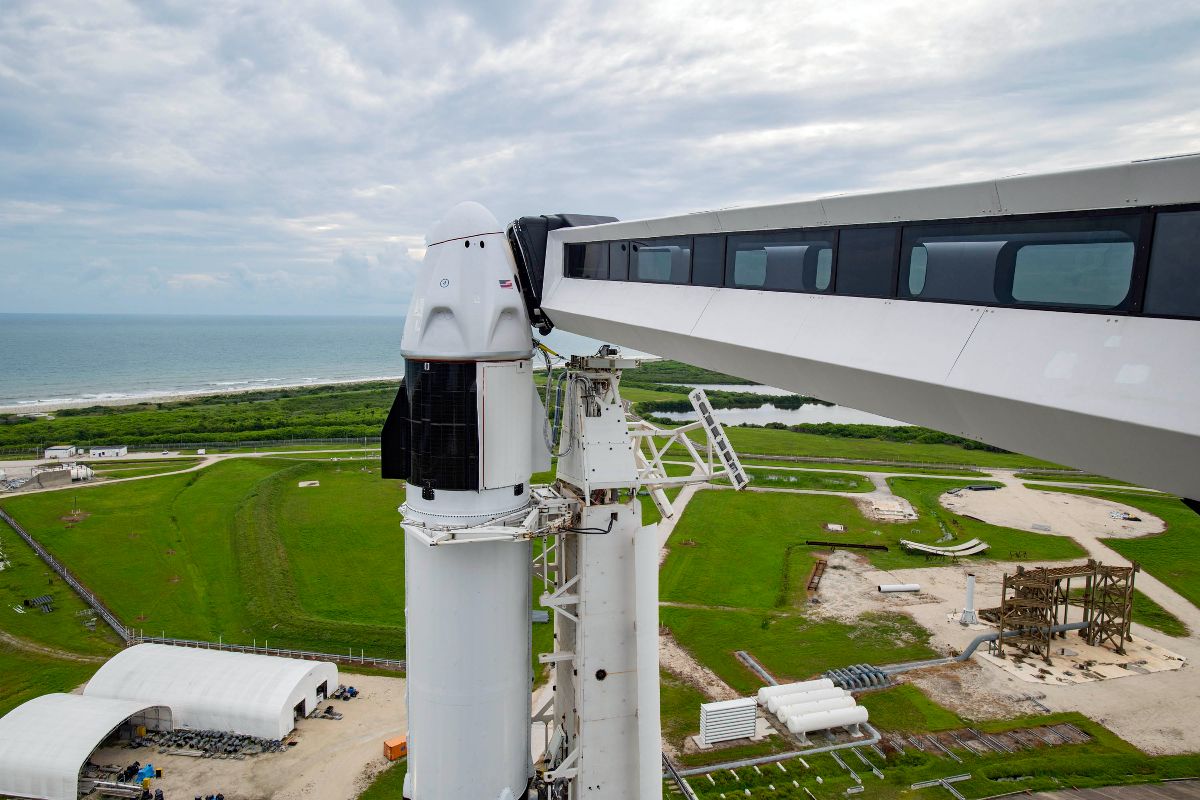 | Inspiration4 awaits launch day on the pad in Florida. |