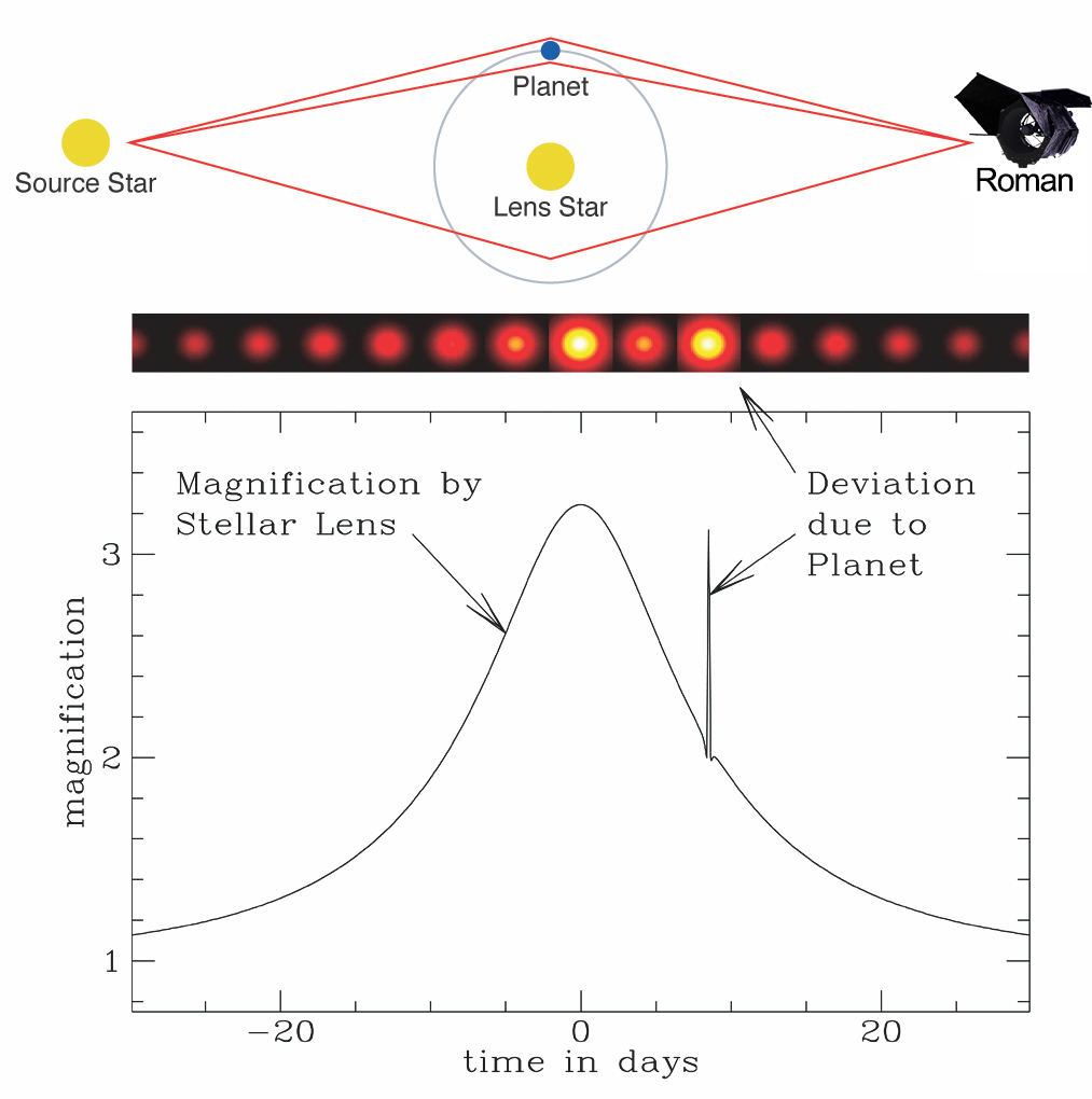¶The Nancy Grace Roman Space Telescope. Now that the JWST is deployed and could have a lifespan of 20 years 🎉 🥳, let’s talk about NASA’s next, next telescope. The wide-field infrared Nancy Grace Roman Space Telescope (née WFIRST) is scheduled to launch in 2025. Like JWST, it will also orbit at the Sun-Earth L2 point. The NGRST has two instruments: the Wide Field Instrument, a 300-megapixel camera with a Hubble-class 2.4 m aperture, but 100x the field of view, and the Coronagraph Instrument, for imaging and spectroscopy of nearby exoplanets. It is predicted to find 100,000 transiting exoplanets via both transit detection and microlensing. Microlensing occurs when, from our perspective, a star passes in front of a more distant star, and light from the further star is distorted by the gravity of the closer star and any exoplanets—the spatial and temporal difference in distortion due to the additional mass of one or more exoplanets is a telltale sign of their presence. Of the 4,884 exoplanets discovered so far, only 120 were found through microlensing. Through this technique, NGRST should be able to detect planets smaller than Earth—possibly approaching the size of moons like Ganymede—as well as stellar-mass black holes and rogue planets that are wandering the galaxy after having been ejected from their host stars. There is a proposal for a follow-on mission called the Starshade Rendezvous Probe (paper) which would add a 26 m starshade that would precisely position itself far in front of the telescope and allow direct imaging of nearby Earth-like exoplanets. The petal-shaped starshade would fly 20,000 to 40,000 km ahead of the telescope while maintaining a positional accuracy of only 1 meter, precisely blocking a star’s light but not the glow of its exoplanets. No big deal. This add-on mission would serve as a test ahead of even larger starshade companions to future observatories such as those called for by last year’s decadal survey. |