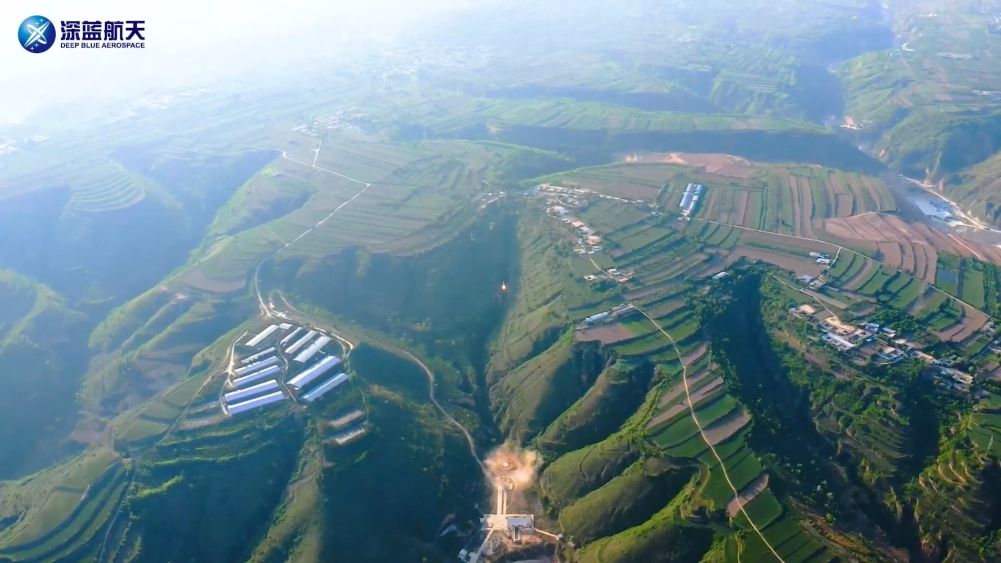 | | Deep Blue’s Nebula-M VTOL test rocket (center) is a small dot amid the Chinese countryside. Vertical velocity appeared high on landing (video), likely leading to an explosion or other damage (not shown 😞). |