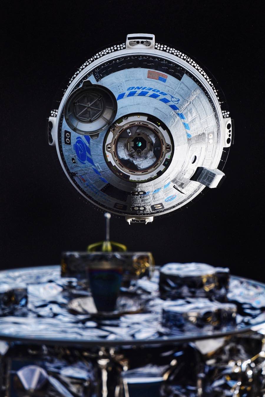 | Boeing Starliner CST-100 sits just 10 meters away from the ISS awaiting final approach while its docking adapter is reset. |