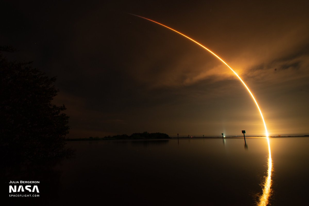 | | The Falcon 9 carrying a Globalstar-15 FM15 communications satellite... and undisclosed secondary defense payloads launched from Cape Canaveral. Photo credit: Julia Bergeron. |