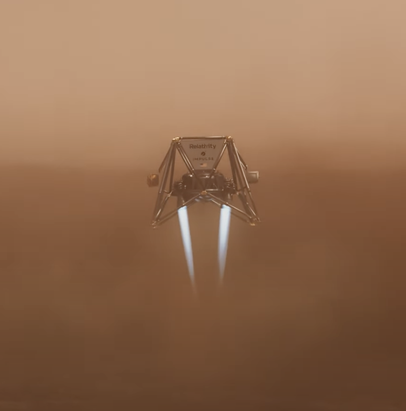| Relativity Space’s lander descending after having separated from its hypersonic aeroshell on Mars. |