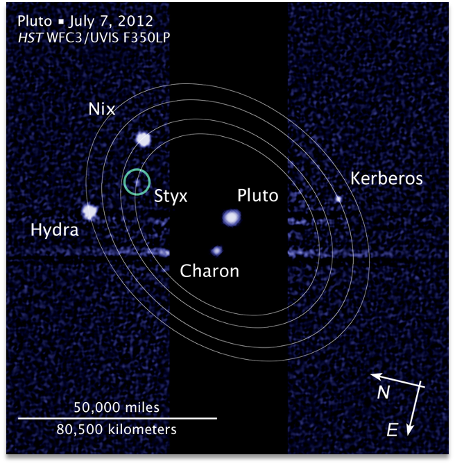 | | An HST image of the Pluto-Charon system with orbits and object names annotated. Credit: NASA, ESA, and STScI |