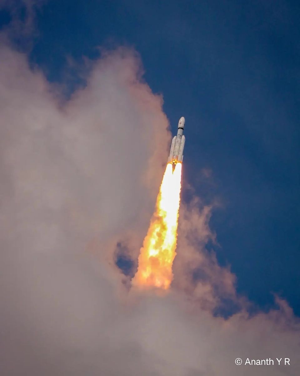 | | GSLV Mk III carrying Chandrayaan-3 Moonward. Credit Ananth Y R |