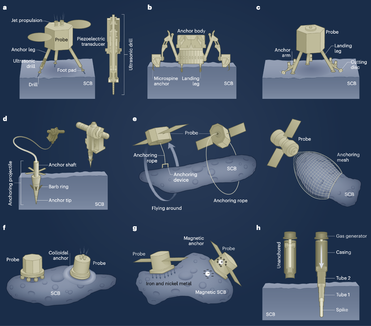 - A recent paper explores methods of landing a spacecraft in the incredibly weak gravitational fields of asteroids. These methods include various anchoring systems that use drills, spikes, barbed spears, lassoes, nets, quick-acting adhesives, and/or magnets… time to rustle ourselves up an asteroid.