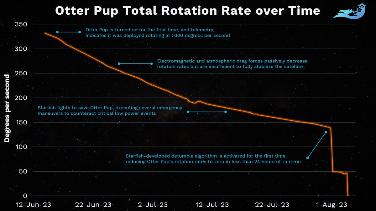 ¶Otter Pup is so back. Starfish Space launched their ambitious rendezvous, proximity operations, and docking (RPOD) Otter Pup demonstration mission on Transporter-8, attached to the Launcher (now owned by Vast) Orbiter SN3 space tug, which Starfish Space also planned to use as its rendezvous test target. After separation from the Falcon 9 upper stage, an anomaly occurred on SN3 creating an increasing rate of spin. Quick decision-making on the part of Launcher resulted in customer payloads being deployed immediately. Along with this deployment, Otter Pup inherited a high rate of spin, 330°/sec (most craft are only able to handle <5°/sec), leading to a depressing outlook for the mission. However, last week the Starfish team announced that they had successfully detumbled the craft using its magnetorquers and a custom-developed algorithm. That algorithm wasn’t shared in detail, but it presumably pulsed power on the magnetorquers when their moment was orthogonal to the Earth’s magnetic field as measured by an onboard magnetometer since pulse timing would change as the spin rate decreased—see this algorithm for the basics. After developing and testing their detumble algorithm, they were able to deploy it to Otter Pup, complete an initial test, and then perform the full de-spin operation (which took less than 24 hours of runtime!) to reduce the craft’s spin to zero. This heartening tale of on-the-fly engineering flies in the face of so many unrecoverable in-space failures over the decades. Now, Starfish is in search of a new craft that Otter Pup could partner with to perform the autonomous rendezvous portions of its mission… let them know if you have one hanging around that could be of use. | |