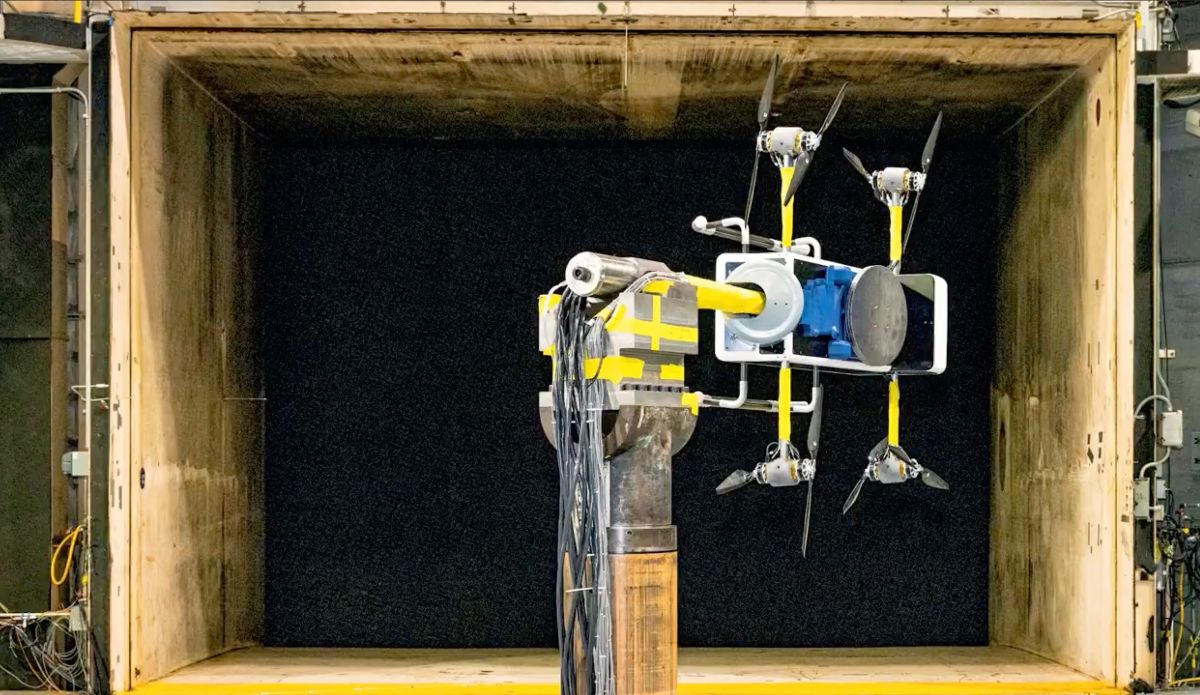 | Titan’s half-scale rotor test article, mounted for wind tunnel testing. |