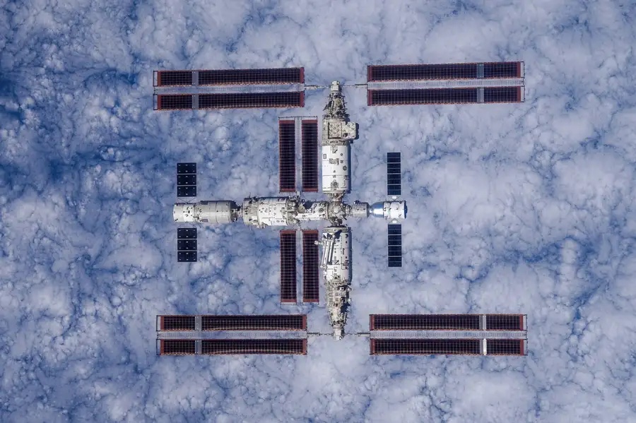 China’s Tiangong space station, as photographed recently by a departing Shenzhou spacecraft. | |