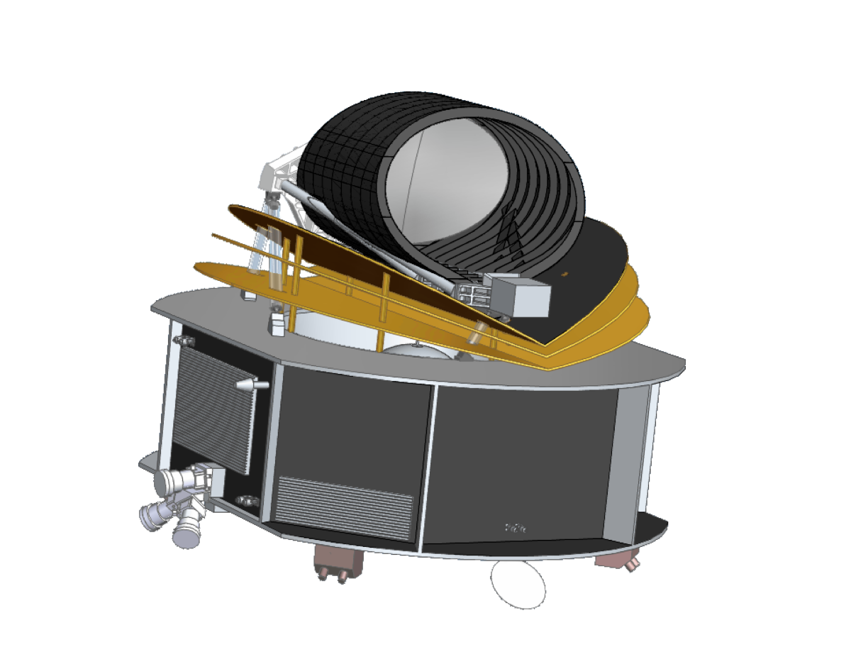 | A CAD rendering of Ariel. Its science instruments require active cooling to -220 °C while at L2, employing either a Joule-Thomson or Stirling cooler with neon as a working fluid. |