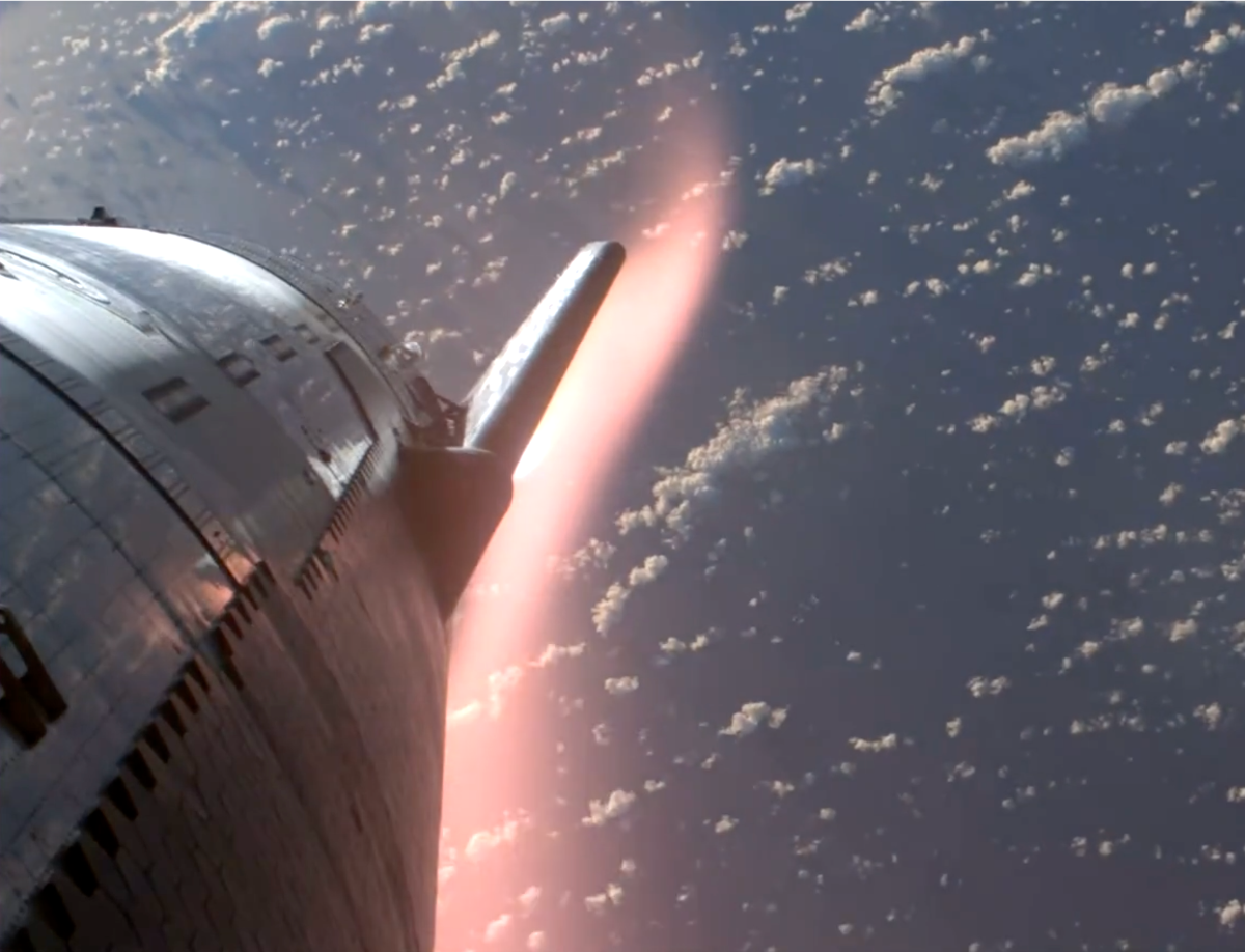 | An unprecedented view of Starship S28 as it hurtles toward the Indian Ocean 46 minutes into its third flight test, compressing the atmosphere until it turns into super-hot, glowing plasma. Credit: SpaceX |