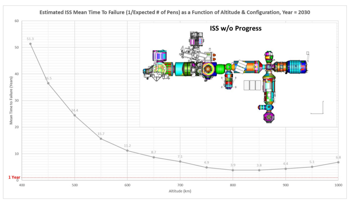 ¶Coming down. SpaceX won a contract valued at up to $843 million to build a vehicle capable of safely deorbiting the ISS once the station is decommissioned in 2030 (c.f. Issue 270). The Agency also released a whitepaper detailing its approach and reasoning around multiple decommissioning scenarios. While many people have suggested raising the ISS’s orbit and turning it into a museum, the amount of fuel needed to move the approximately 420-ton station to a high enough orbit to remain stable for long durations is beyond prohibitive, at least with existing chemical propulsion and current vehicles (propellant alone would be 4-15x the amount needed for a deorbit). Additionally, boosting to a higher altitude means moving through bands of significantly higher debris strike risk, which in a worst-case scenario, could create a cascade of debris (possibly even leading to Kessler syndrome). | |