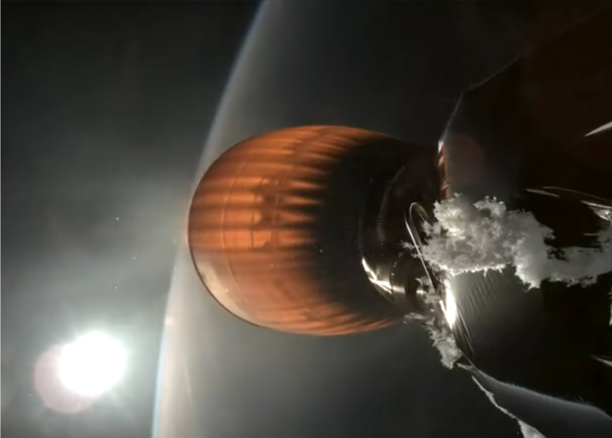 | Liquid oxygen ice building up on the Falcon upper-stage MVac engine prior to the anomaly. |