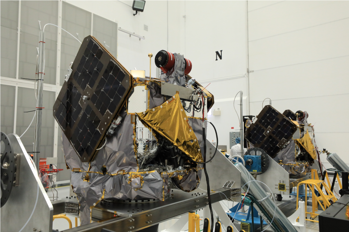 | The two identical spacecraft for NASA’s ESCAPADE mission were inspected and processed at the Astrotech Space Operations Facility at Kennedy Space Center. |