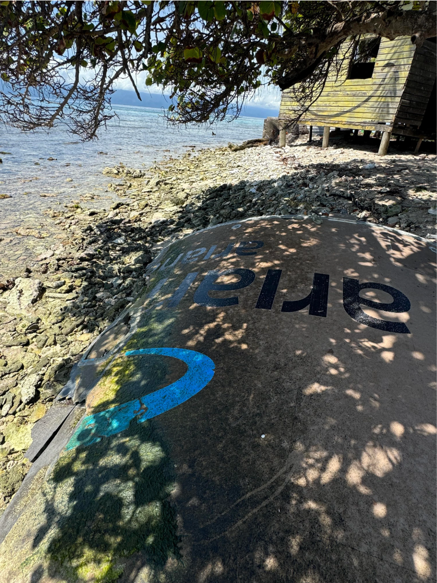 | Arianespace rocket debris found by Irmen, an aerospace engineer from Dayton, Ohio, while snorkeling on a remote island off the coast of Honduras. |