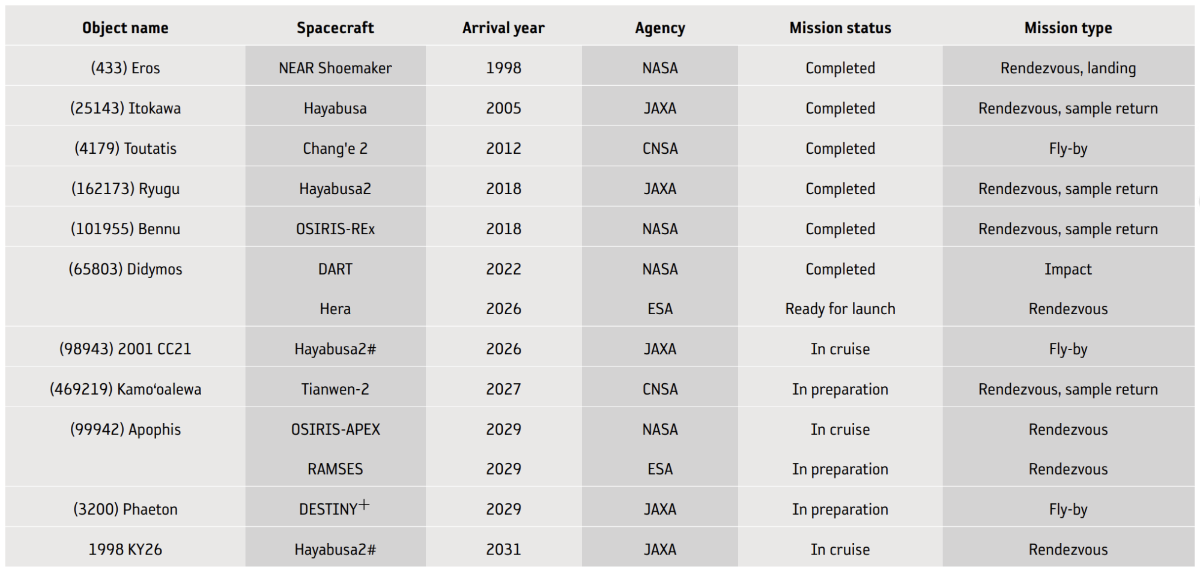 | List of NEAs that have been visited or are scheduled to be visited by governmental spacecraft. Credit: ESA’s NEO Coordination Center |