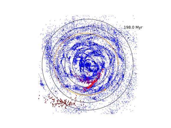 | Streams of objects in a simulated Milky Way. Credit: Forbes et al. |