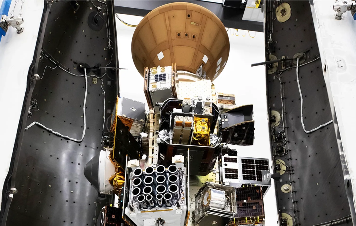 | The Exploration Company's Nyx capsule on top of Transporter-14’s payload stack. Credit: SpaceX |