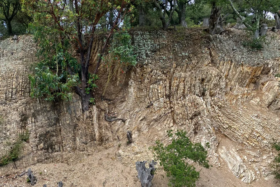 | Chert on Skyline Boulevard in the East Bay hills above Oakland, CA. Image credit: Andrew Alden of the excellent Oakland Geology blog (and book). |